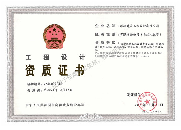 深圳建昌工程設(shè)計有限公司成立于2006年,是國家住建部批準的建筑行業(yè)建筑工程設(shè)計甲級、城鄉(xiāng)規(guī)劃編制甲級、風(fēng)景園林工程設(shè)計甲級、工程咨詢甲級、工程監(jiān)理甲級及其它相關(guān)(市政工程、人防工程、勘察測量、造價咨詢等)乙級資質(zhì)單位。通過多年發(fā)展與積累,公司已建設(shè)成為資質(zhì)齊全、產(chǎn)業(yè)鏈完整、在國內(nèi)具備相當實力的工程行業(yè)服務(wù)企業(yè)。?