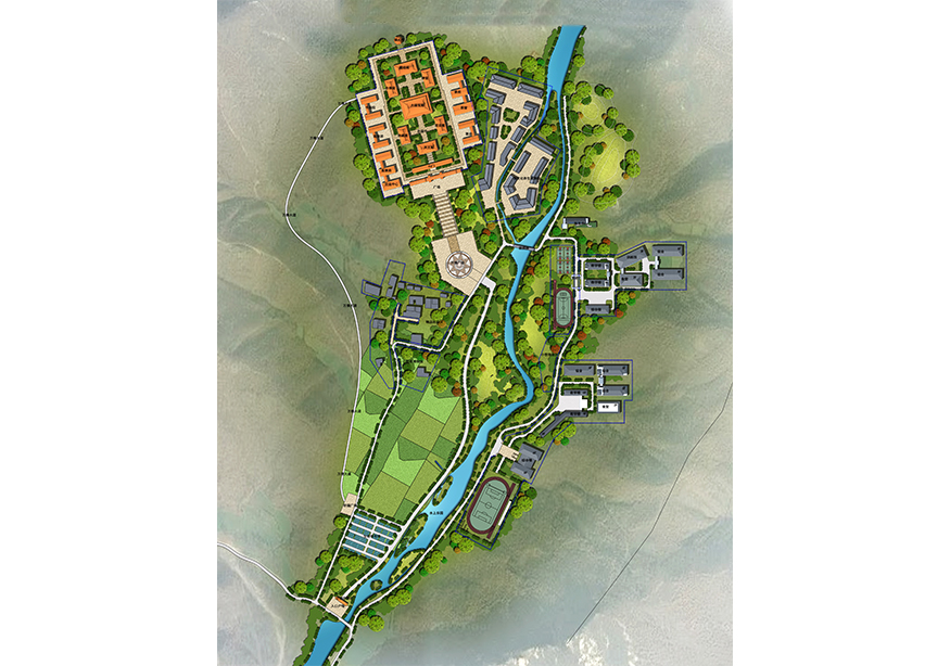 駐馬店忠國寺項目選址位于河南省駐馬店市,距離市區(qū)約50公里,占地面積共約30000畝,總建筑面積約8萬方。用地現(xiàn)狀自然分光、地形地貌獨特,且風水極佳,背有高山、前有流水、位于山谷之中,藏風聚氣。整個項目圍繞忠國寺以“禪行”文化展開設計,規(guī)劃有六大板塊,包含忠國寺寺廟區(qū)、衡水中學駐馬店分校、文武學校、養(yǎng)生素齋館、精品民宿區(qū)、北影影視基地。同時項目含有萬佛大道、景觀索道、玻璃通天橋、聯(lián)姻橋、水上樂園等交通、旅游方面配套設施。